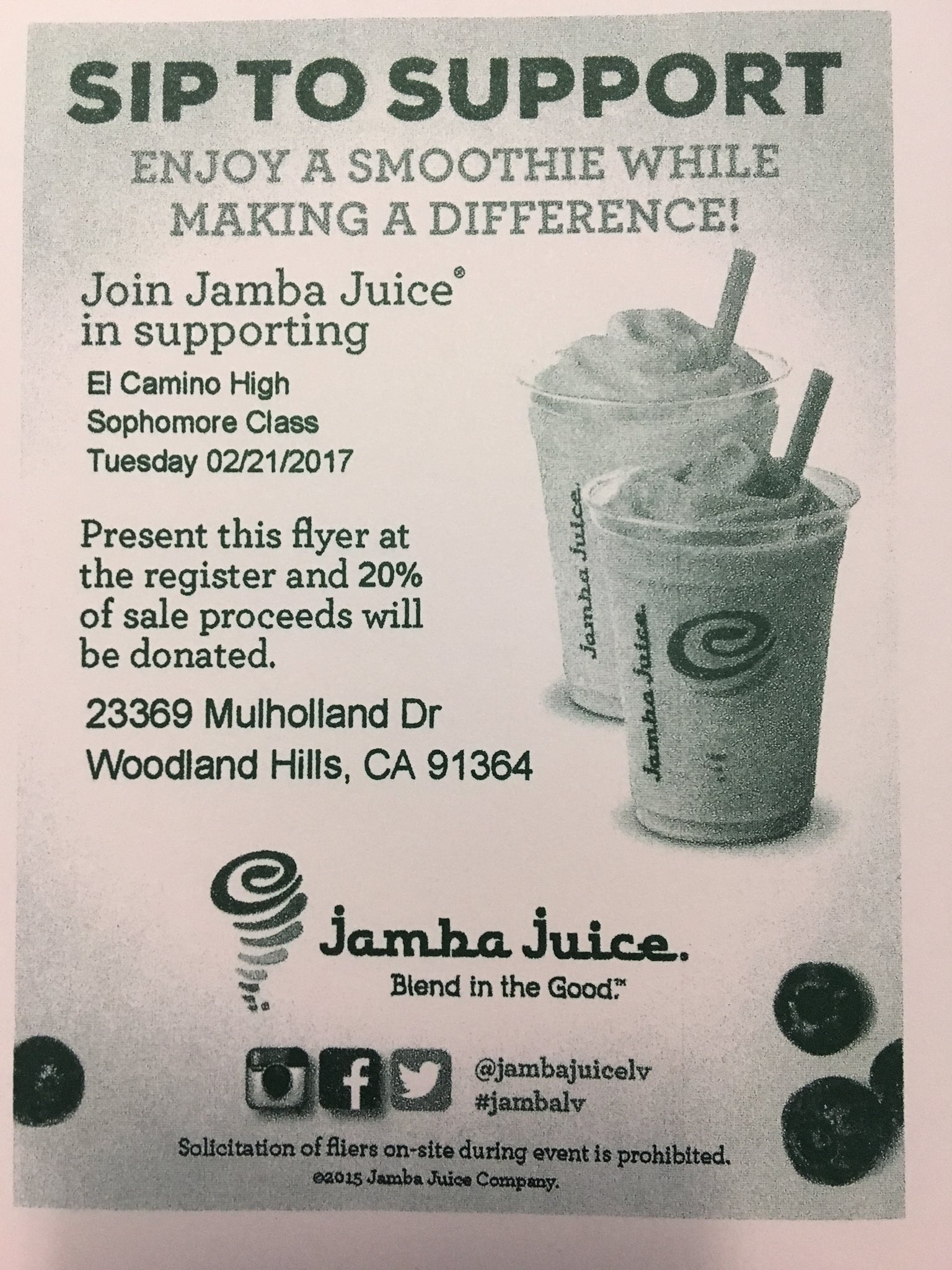 El Camino Real On Twitter Go To Jamba Juice Today On Mulholland Drive To Support The Sophomore Class