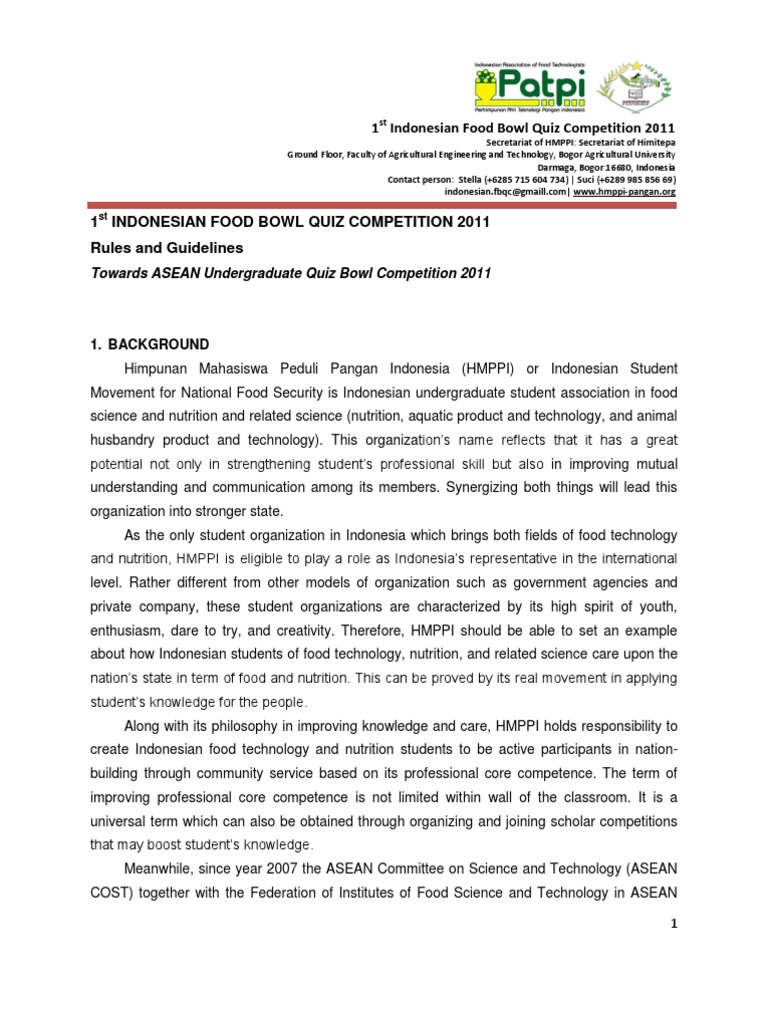 Guideline Of 1st Indonesian Food Bowl Quiz Competition 2011