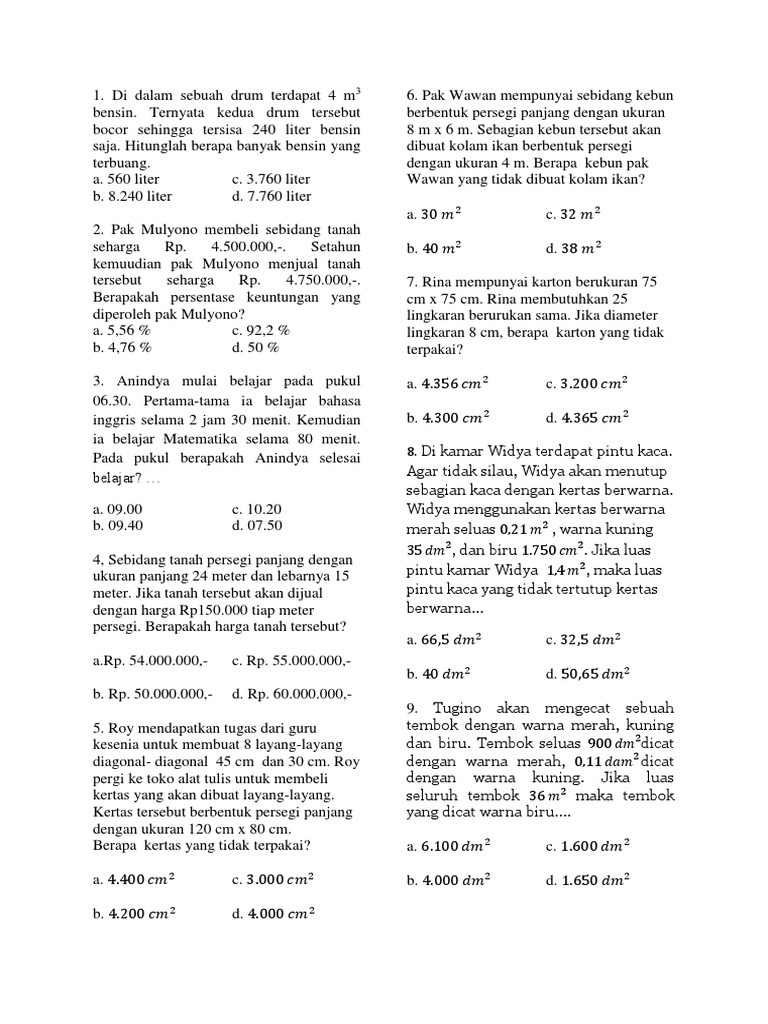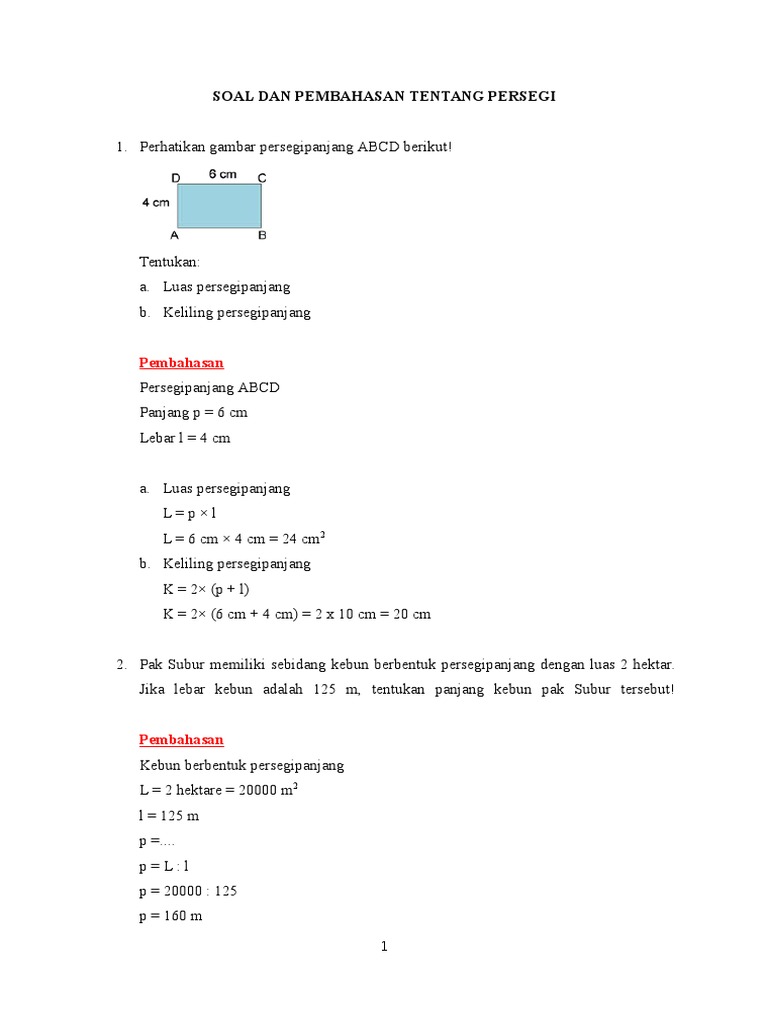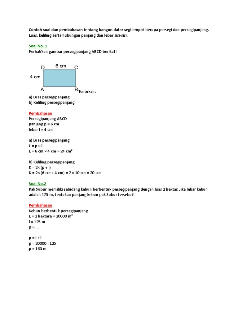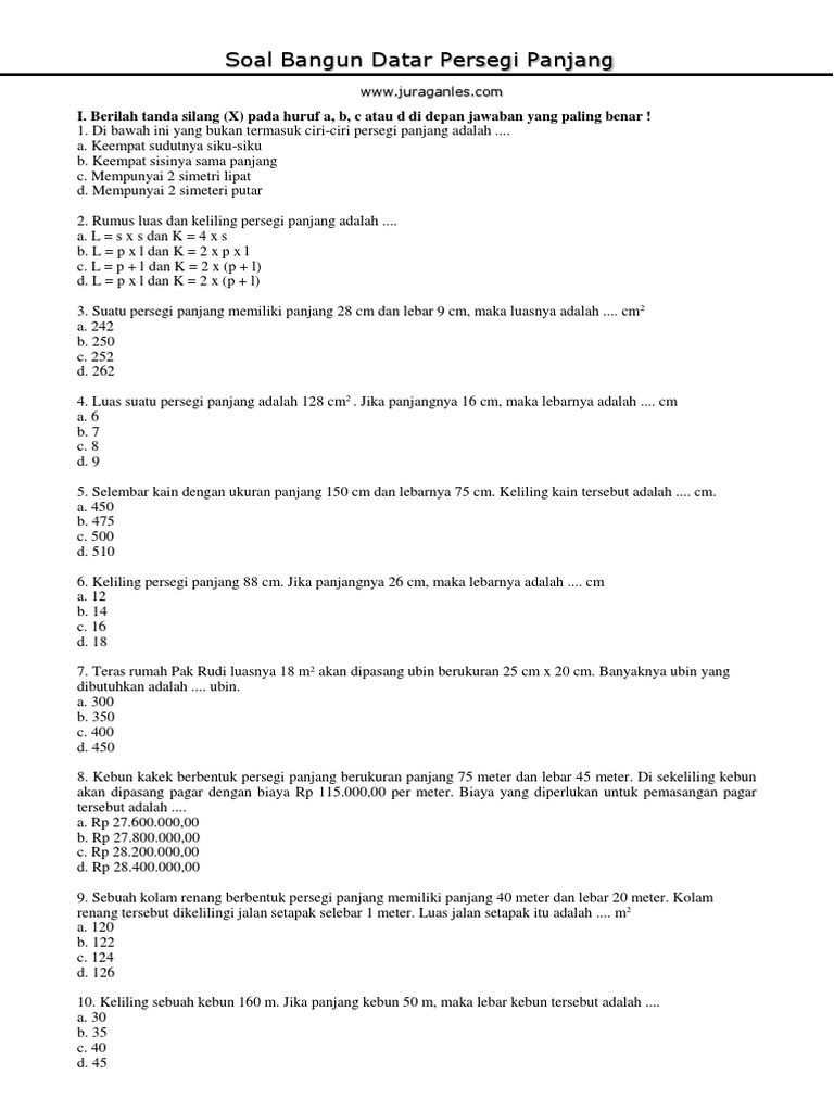 Soal Luas Dan Keliling Persegi Panjang Plus Kunci Jawaban Pdf